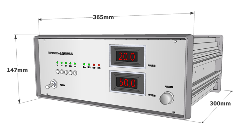 描述:产品名称:FFT48C20A全自动充电机;产品型号:FFT48C20A;输入参数:220V8A (额定)输出参数:48V20A;结构重量:便捷式2.5Kg;外形尺寸:365147300MM全自动充电机。